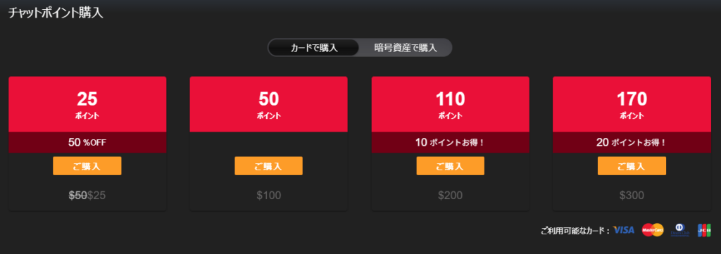 ※通常チャットにプラスして消費ポイントが上乗せされます。